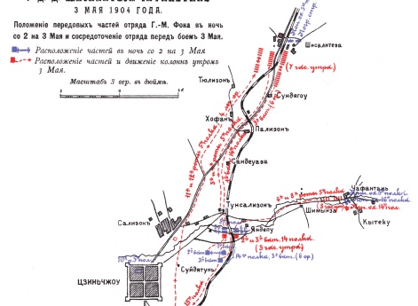 Дело у деревень Шисалитеза-Чафантань 3 мая 1904 года. Положение передовых частей отряда генерал-майора Фока в ночь со 2 на 3 мая и сосредоточение отряда перед боем 3 мая