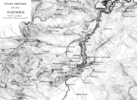 Окрестности крепости-лагеря Карс с показанием осадных работ, произведенных в мае и июне 1877 года