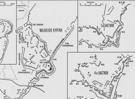 Основные севастопольские укрепления к началу 5-ой бомбардировки