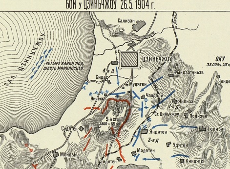 Бой у Цзиньчжоу 13 мая 1904 года. Положение сторон около 6 часов утра