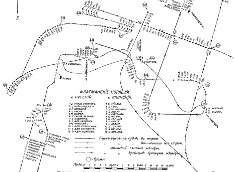 Объединенная русская эскадра, включавшая в свой состав 2-ю и 3-ю Тихоокеанские эскадры, имела своей целью после сдачи Порт-Артура прорыв во Владивосток (2-я Тихоокеанская эскадра русского флота вышла из Либавы 2.10.1904; 3-я Тихоокеанская эскадра русского флота вышла из Либавы 2.02.1905). Однако русская эскадра была встречена в Цусимском проливе около о. Цусима превосходящими силами японского флота и в ходе морского сражения, продолжавшегося два дня, была практически полностью уничтожена. Лишь четырем кораблям (два крейсера и два миноносца) удалось прорваться во Владивосток. Остальные корабли эскадры частично потоплены, в т.ч. и своими экипажами, захвачены в плен или интернированы в иностранных портах.