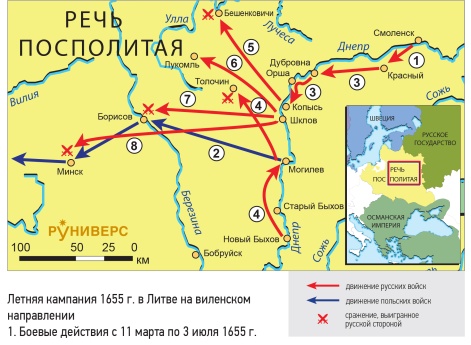 Русско-польская война 1654–1667 гг. Летняя кампания 1655 г. в Литве на виленском направлении 1. Боевые действия с 11 марта по 3 июля 1655 г.