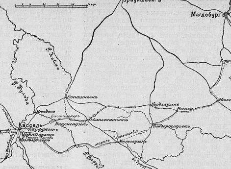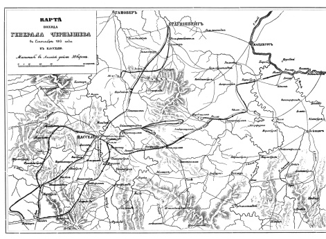 Карта похода генерала Чернышева в сентябре 1813 года к Касселю.