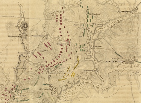 Русско-австрийская армия совершала наступательный марш-маневр на Брюнн, но под Аустерлицем Наполеон нанес ей неожиданный удар, разрезав надвое и разбив войска центра и левого крыла.