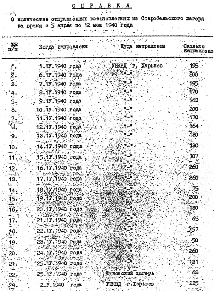 Справка о количестве отправленных польских военнопленных из Старобельского лагеря