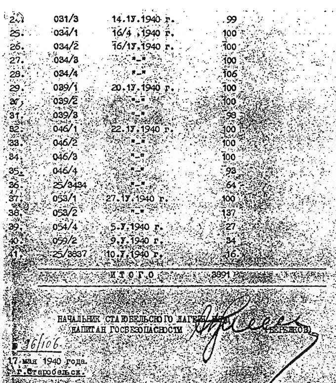 Воспроизв. по: Катынь. Пленники необъявленной войны. Документы и материалы. / Под редакцией Р.Г. Пихои, А. Хейштора.