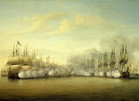 Изначально французы следовали на противника строем фронта, а в 3 кабельтовых сделали поворот на 8 румбов на север, и линия была сформирована. Из-за такого маневра часть кораблей арьергарда оказалась чуть в стороне от боя, а центр французской эскадры — на расстоянии 1,5–2 кабельтовых от противника. Именно в центре и произошел самый жестокий бой.