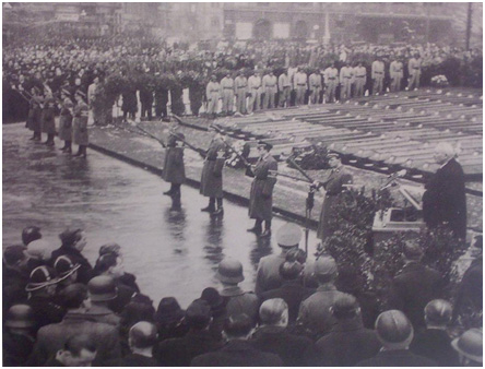 Похороны жертв налета американских ВВС на Прагу 14 февраля 1945 г. (на снимке чешские коллаборационисты в форме и с факелами).