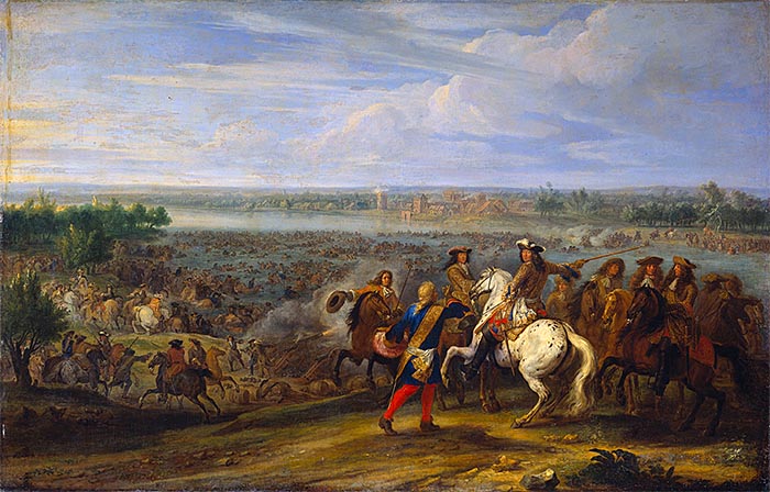Людовик XIV со своей армией преходит Рейн 12 июня 1672 года. Автор: Адам Франс ван дер Мейлен (Adam-Frans van der Meulen) (1632-1690). 1690. 105,7 x 170 см. Холст, масло. Рейксмузеум, Амстердам.