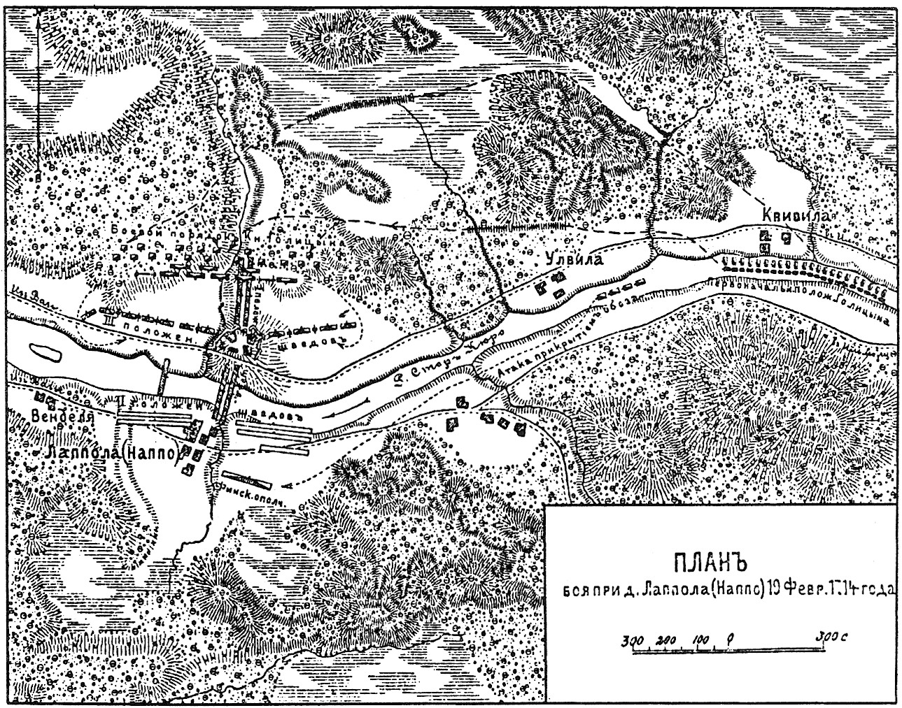 2 марта (19 февраля ст.ст.) русские войска встретились со шведским авангардом возле деревни Квивила в четырех верстах от деревни Лаппола. Главные силы шведов прикрывали дорогу на город Васу возле самой деревни.