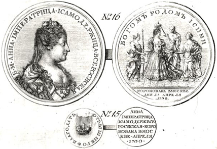 Монета, отчеканенная в честь коронации императрицы Анны Иоанновны