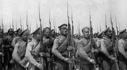 Русская пехота на марше. Джордж Мьюз, National Geographic Magazine, Volume 31, 1917