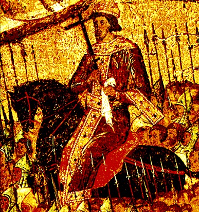 Иван IV. Фрагмент иконы "Благословенное воинство Небесного Царя" ("Церковь воинствующая"). Из Успенского собора Московского кремля, 50е гг. 16 века