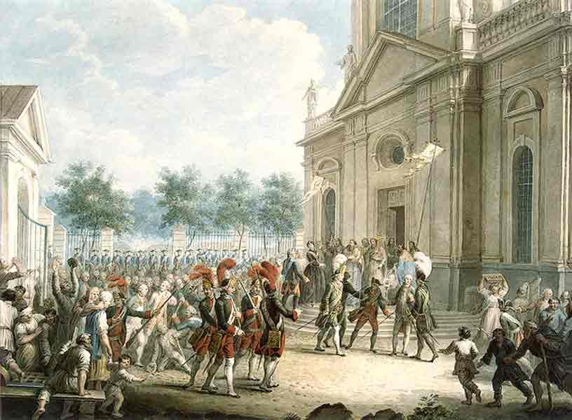 Екатерина II на ступенях Казанского собора, приветствуемая духовенством в день воцарения 28 июня 1762 года. Неизвестный художник. Конец 18 века