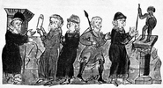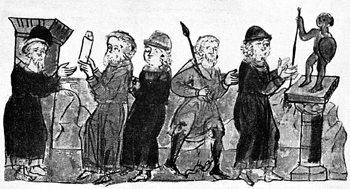Заключение договора Олега с греками. Миниатюра Радзивилловой летописи. 15 век.