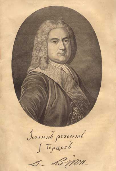 Эрнст Иоганн Бирон. Гравюра Л.А. Серякова. 1730-е гг.