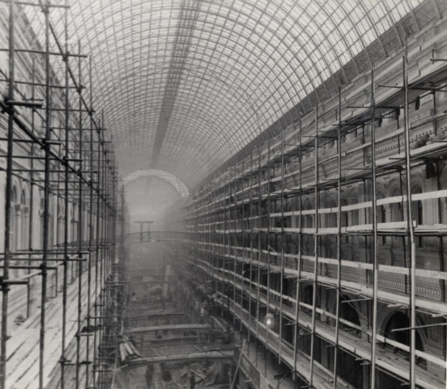 Верхние торговые ряды в период строительства. Фотография 1892 года