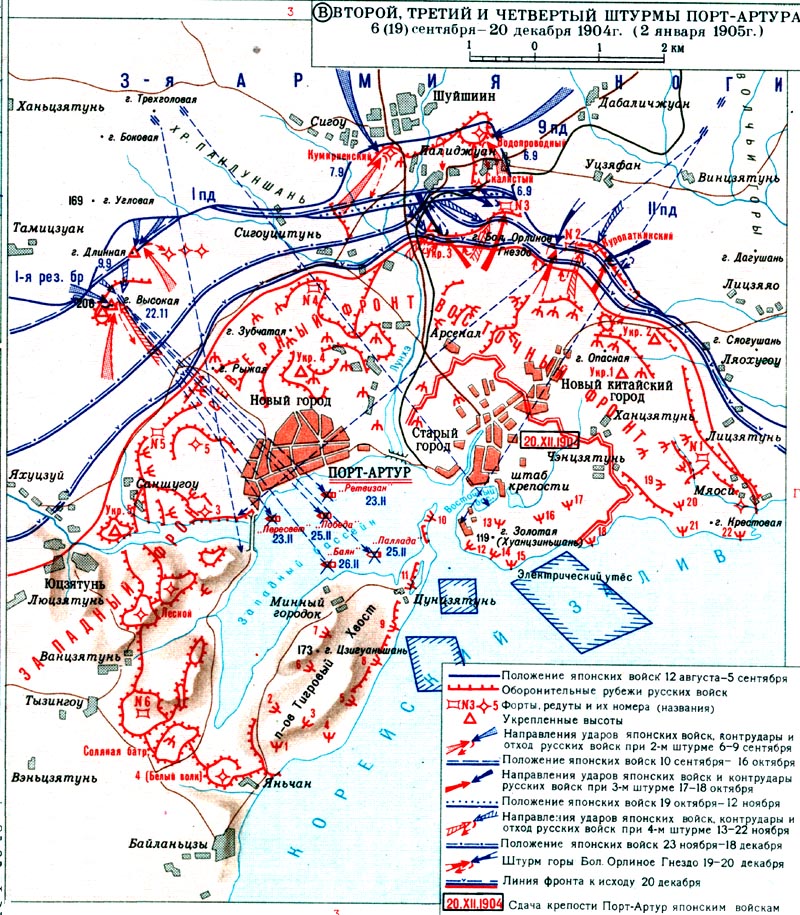 Карта второго, третьего и четвертого штурма Порт-Артура