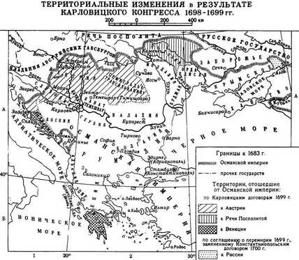 26 января 1699 между Австрией, Польшей, Венецианской республикой и Османской империей был заключен Карловицкий мир. По условиям мирного договора к Австрии отходили вся Венгрия, а также Трансильвания и Тимишоара. Венеция закрепила за собой полуостров Морея и Далмацию. Польша возвратила потерянные по условиям Бучачского мира земли, в том числе Подолье и другие части Правобережной Украины.