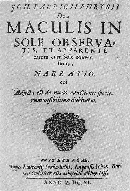 В 1611 году голландско-немецкий астроном Йоханнес Фабрициус описывает первые наблюдения пятен на солнце