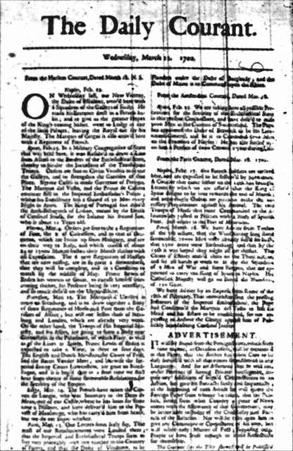 В 1702 году начинает выходить первая английская ежедневная газета – Daily Courant.