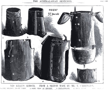 В Австралии схвачен и повешен знаменитый разбойник Эдвард «Нед» Келли, грабивший банки в бронекостюме и ставший фольклорным героем. Фотография Неда Келли перед повешением Впервые он угодил за решетку на несколько месяцев в 14 летнем возрасте за налет на соседнюю ферму. В течение следующих лет он то и дело попадался полиции и снова оказывался в тюрьме за мелкие кражи и угон скота. В конце концов он решил противостоять полиции всерьез, вооружился револьвером, подстрелил местного констебля и ударился в бега. Скрываясь от полиции, Нед Келли сколотил банду и принялся промышлять разбоем. В следующей стычке со служителями закона бандитам удалось убить уже троих полицейских. Почувствовав силу, Нед решил перейти к более серьезным делам и начал совершать налеты на банки. Чтобы защититься он придумал сделать для всех членов банды бронированные костюмы. Изготовленные из прочной стали, каждый весом почти в 44 килограмма они легко отбивали пули. Разбойники, казавшиеся теперь неузявимыми, наводили ужас на весь штат Виктория, а вокруг имени их предводителя стали слагаться легенды. Бронекостюмы банды Неда Финальный акт истории Неда Келли и его подельников был сыгран в городишке Гленрован. Здесь они узнали, что обнаружены полицией, и на подходе к городу уже целый поезд с вооруженными охотниками за их головами. Бандиты решили принять бой. Они загнали примерно 70 заложников в местную гостиницу и заняли оборону. Вскоре они были полностью окружены, и на предложение сдаться отвечали огнем. Однако полиция держала осаду цепко, намереваясь всеми силами не дать разбойникам на этот раз уйти. Когда Нед понял, что ему не вырваться, он вышел из гостиницы в своем бронекостюме с винтовкой наперевес и пошел прямо на полицейских, ведя непрерывный огонь. Однако броня не прикрывала его ноги и метким стрелкам удалось ранить его и обездвижить. Нед Келли был схвачен. Увидев такую судьбу своего главаря, его подельники, остававшиеся в гостинице, предпочли покончить с собой. Нед Келли остался в живых и после короткого суда был повешен на месте. Его подвиги, как водится, стали частью местного фольклора, и по сей день история его похождений привлекает писателей, музыкантов и кинематографистов. Фигура Неда Келли возле гостинцы в Гленроване и сегодня привлекает туристов