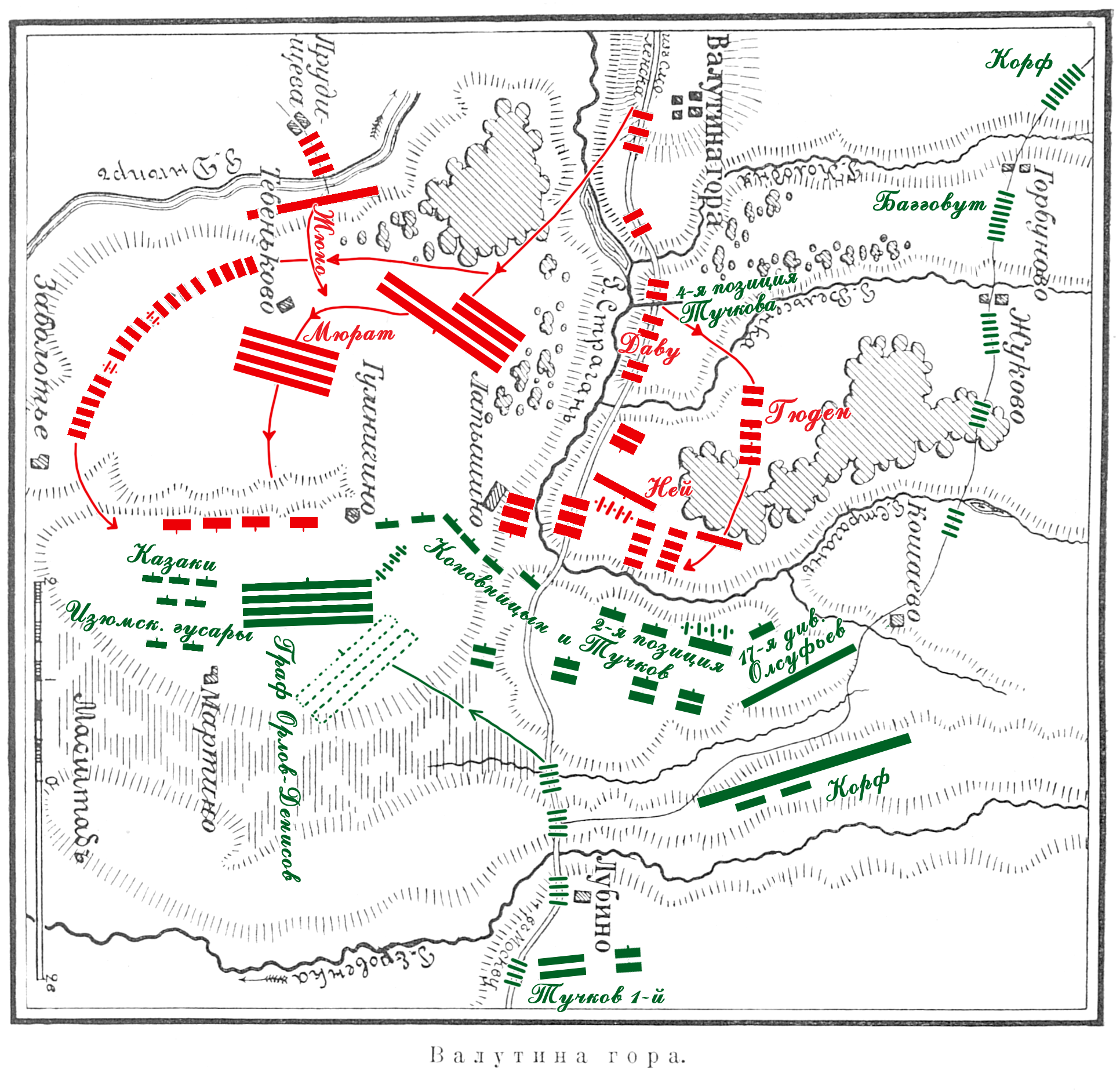 Валутина гора. Схема сражения 7 авг. 1812г.