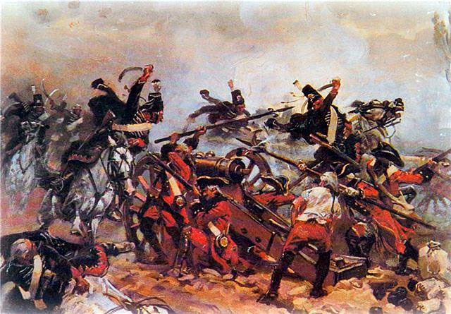 Атака прусских гусар на русскую батарею под Гросс-Егесдорфом в 1758 году Войцех Коссак Wojciech Kossak 1857—1942 60 х 90 см холст, масло 1897 Частная коллекция Фрагмент. Смотреть полностью.