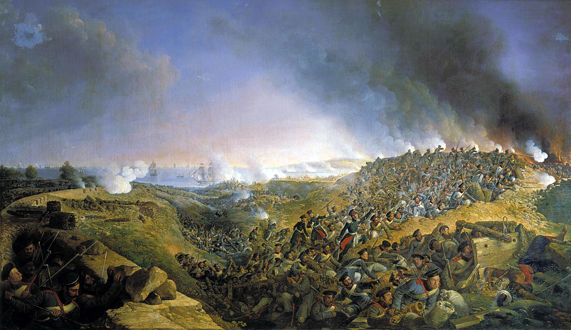 Инженерная атака крепости Варна саперным батальоном 23 сентября 1828 года. Художник: Зауервейд Александр Иванович 1783 - 1844 203 x 352 см Холст, масло. 1836 Центральный военно-исторический музей артиллерии, инженерных войск и войск связи Санкт-Петербург Фрагмент. Смотреть полностью.