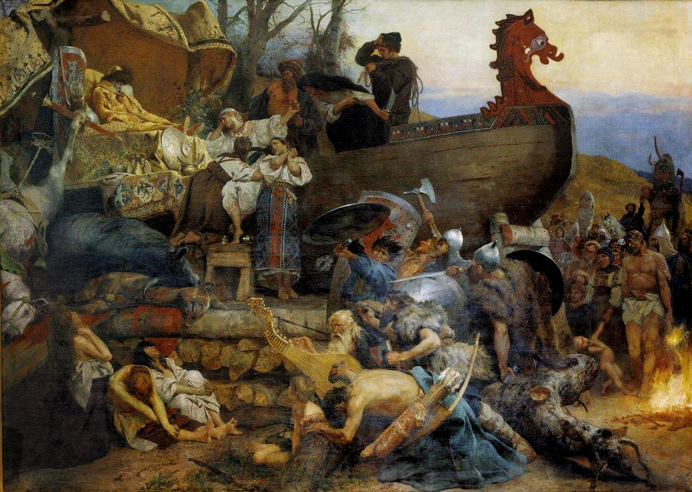 Похороны знатного руса в Булгаре Художник: Семирадский, Генрих Ипполитович (1843-1902) 380 x 540 см. Холст, масло 1883 Государственный Исторический музей Москва Фрагмент. Смотреть полностью.