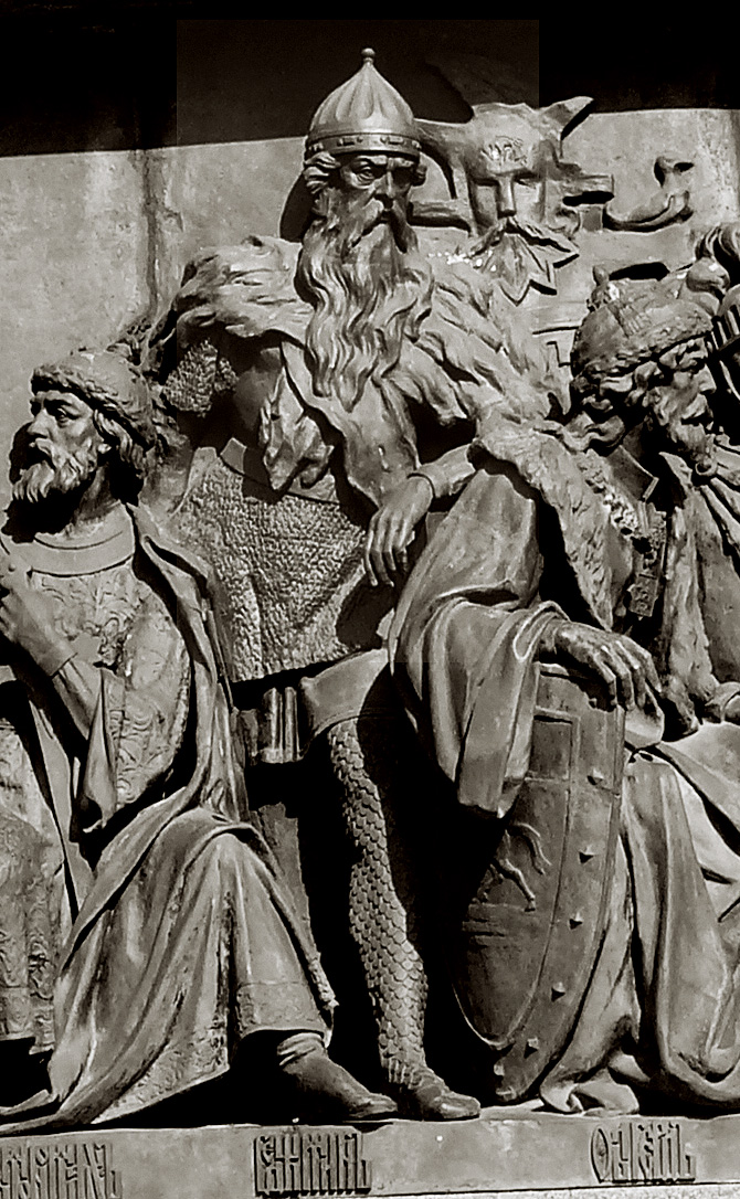 Великий князь литовский Гедимин ( в центре) Фрагмент Памятника «Тысячелетию России» в Великом Новгороде. Нижний ярус, восточная сторона, группа «Государственные люди» ( установлен в 1862 г.) Автор: Микешин Михаил Осипович 1835-1896 Фрагмент. Смотреть полностью.