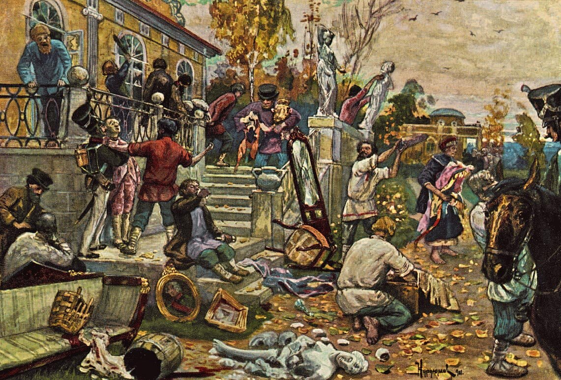 В 1812 г. сильно опасались бунта крепостных. В Петербурге по поводу предполагаемого выезда из столицы министерств были высказаны такие соображения: «Всякому известно, кто только имеет крепостных служителей, что род людей сих обыкновенно недоволен господами». Если правительство вынуждено будет «оставить столицу, то прежде, нежели б могло последовать нашествие варваров, сии домашние люди, подстрекаемые буйными умами, без всякого состояния и родства здесь живущими, каковых найдется здесь весьма довольно, в соединении с чернью все разграбят, разорят, опустошат» Что в Москве некоторые крепостные возлагали надежду на освобождение с пришествием французов, видно из следующего дела. Петр Иванов, дворовый человек комиссионера комиссариатского департамента Серебрякова, встретился 22 марта 1812 г. с дворовым помещика Степанова, Медведевым, и стал жаловаться ему на своих господ, говорил, что хотел бы бежать или как-нибудь от них избавиться. Медведев возразил: «Погоди немного, — и так будем все вольные: французы скоро возьмут Москву, а помещики будут на жаловании». Иванов, услышав это, сказал: «Дай Бог, нам тогда лучше будет». Он сообщил важную новость другим дворовым и начал оказывать некоторое неповиновение своему господину. Когда об этом случае узнал секретный комитет, учрежденный 13 янв. 1807 г., которому велено было сообщать о всех делах «по важным преступлениям» и измене против «общего» спокойствия и безопасности», он предписал московскому главнокомандующему Гудовичу «усугубить при теперешних обстоятельствах полицейский надзор во всех тех местах, где народ собирается, в особенности ж по питейным домам, трактирам и на гуляньях, и иметь бдительное внимание к разговорам и суждениям черни, пресекая всякую дерзость и неприличное болтанье в самом начале и не давая отнюдь распространяться», а петербургскому главнокомандующему Вязмитинову, управлявшему тогда министерством полиции, поручил обратить особенное внимание на выходящие в свет «сочинения о предметах политических» и на журналы и другие «периодические листочки». Гудович отвечал, что деятельность полицейского надзора в Москве «доведена до совершенства.... Между благородными и иностранцами есть особливые секретные наблюдатели, почитаемые за их друзей, а равномерно по всем трактирам, шинкам и другим народным сборищам, где бдительнейшее они имеют внимание ко всяким разговорам и суждениям»... Генерал Н.Н. Раевский писал в конце июня 1812 г.: «Я боюсь прокламаций, чтобы не дал Наполеон вольности народу, боюсь в нашем краю внутренних беспокойств». Есть свидетельство, что Наполеон вел разговор с крестьянами о свободе. В Москве он приказал разыскивать с большим старанием в уцелевших архивах и частных библиотеках все, что касалось Пугачевского бунта: особенно желали французы добыть одно из последних воззваний Пугачева. Писались даже проекты подобных манифестов. В разговоре в Петровском дворце с г-жею Обер-Шальме, владетельницей очень большого магазина в Москве женских нарядов, дорогих материй, севрского фарфора и проч., Наполеон спросил ее: «Что вы думаете об освобождении русских крестьян?» Она отвечала, что, по ее мнению, «одна треть их, быть может, оценила бы это благодеяние, а две другие не поняли бы даже, что им хотят сказать». — «Но разговоры, по примеру первых увлекли бы за собою други