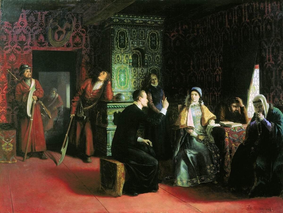 Почти через месяц после коронации Шуйского, состоявшейся 1 июля 1606 г., воеводу Сендомирского выселили с дочерью из стен кремлевских и перевели в Китай-город, в дом думного дьяка Афанасия Власьева, любимца и канцлера лжедмитриева, сосланного после погибели Самозванца. Здесь Марина и отец ее, утешенные свиданием с молодым сыном последнего, старостою Саноцким, прожили под полу-арестом около трех недель, и отсюда, по царскому повелению, были, в половине августа, отправлены на жительство в Ярославль, куда последовало за ними 375 человек их земляков, в том числе все придворные дамы и фрейлины павшей царицы. На переезде от Москвы до Ярославля, оконченном в 16 дней, изгнанники получали весьма скудное содержание, кормили лошадей на свой счет и охранялись, или, вернее, сторожились 300 стрельцов. Но за то, на этом же переезде Марина услышала странную новость: ей сказали, что муж ее, гибель которого она давно оплакивала, — вовсе не убит народом, но спасся и в настоящее время благополучно обретается в Самборе, родном городке Марины, в том самом Самборе, где некогда Марина выслушивала страстные признания царевича Дмитрия, где впервые снились ей престол и корона царства московского. Спасение мужа Марины, действительно, могло казаться возможным самой Марине, слышавшей еще в Москве, что труп, выброшенный на «лобное место», позорно валявшийся тут целых три дня, мало поход ил лицом на царя Дмитрия и носил ясные следы только что выбритой бороды, которой у мужа Марины вовсе не имелось. Как бы то ни было, Марина перевезла за Которосль некоторые надежды и внесла их с собою в отведенный ей и ее камер-фрейлинам дом, стоявший за земляным валом Ярославля, рядом с домом, назначенным в жилище воеводе Сендомирскому. Ярославское изгнание Марины, ознаменованное пожаром в самых комнатах бывшей царицы, происшедшие на третий же день по приезде ее в Ярославль, продолжалось около двух лет и прекратилось вследствие договора, заключенного царем Шуйским с поляками, 15 июля 1608 г. Из восьми статей этого договора следующие три прямо касались Марины: 1) Воеводу Сендомирского с дочерью и всех ляхов освободить и дать им нужное для путешествия до границы. 2) Воеводе Сендомирскому не называть нового обманщика своим зятем и не выдавать за него дочери. 3) Марине не именоваться и не писаться Московскою царицею. Клятвенно обязавшись не нарушать этих условий, Марина, отец ее и другие поляки выехали из Ярославля и, под надзором князя Влад. Долгорукого с отрядом боярских детей — следовали на Углич, Тверь и Белый к смоленской границе. Но все эти пленники, замечает Болтин «в самое то время, как языком клялися, в сердце своем противное уже умышляли». Им, конечно, было очень хорошо известно, что язва самозванства, въевшаяся тогда в тело России, разделяла русских на несколько враждебных лагерей, с которыми никак не мог управиться всероссийский самодержец Вас. Ив. Шуйский. К тому же, старик Мнишек и дочь его, честолюбивая не менее отца, не могла не знать, что в их родном Самборе воскрес, под покровительством старой паньи воеводины Сендомирской, новый царь Дмитрий — не то попович, не то дьяк, может быть школьный учитель, даже, говорят, жидок, стоявший теперь в подмосковном селе Тушине, куда, с некоторого времени, начали стекаться к нему все враги законного порядка и только что пришел с своим семитысячным от