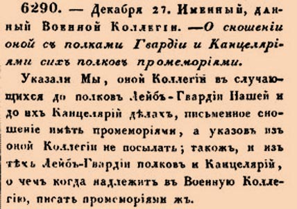 6290.- Декабря 27. Именный, данный Военной Коллегіи.- О сношеніи оной съ полками Гвардіи и Канцеляріями сихъ полковъ промеморіями.