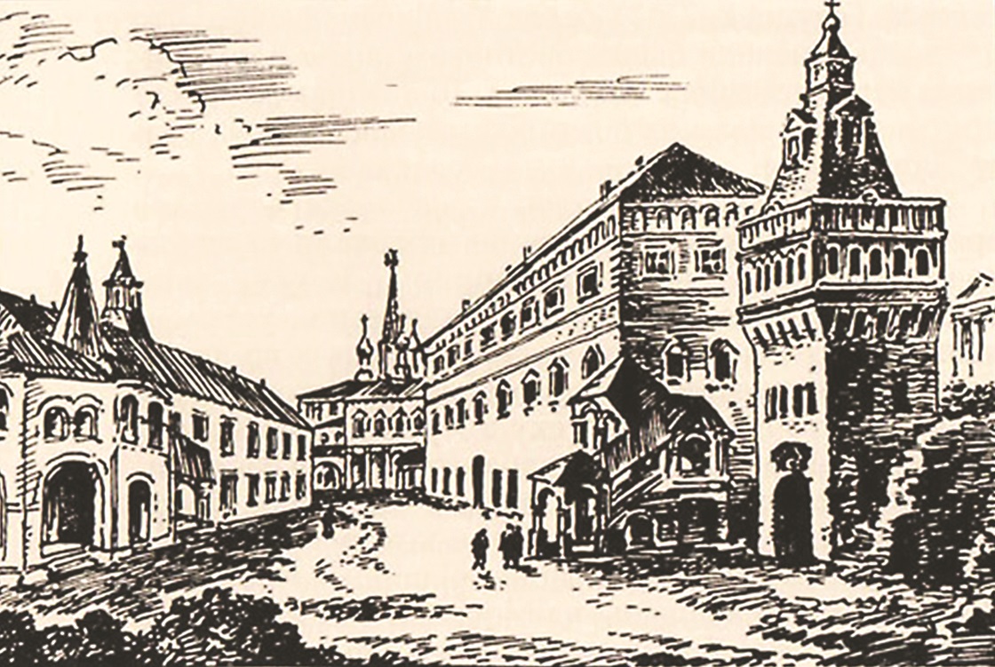 Здание Аптекарского приказа в Московском Кремле (ок. 1600-х гг., ныне не сохранилось).