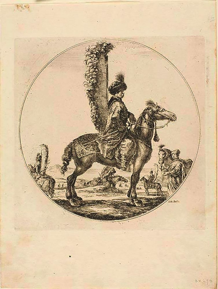 Офицер польских гусар. Командир почетной гвардии польского посольства в Париж 1645 г. полковник Кш. Щодровский Офорт худ. Стефана Делла Беллы
