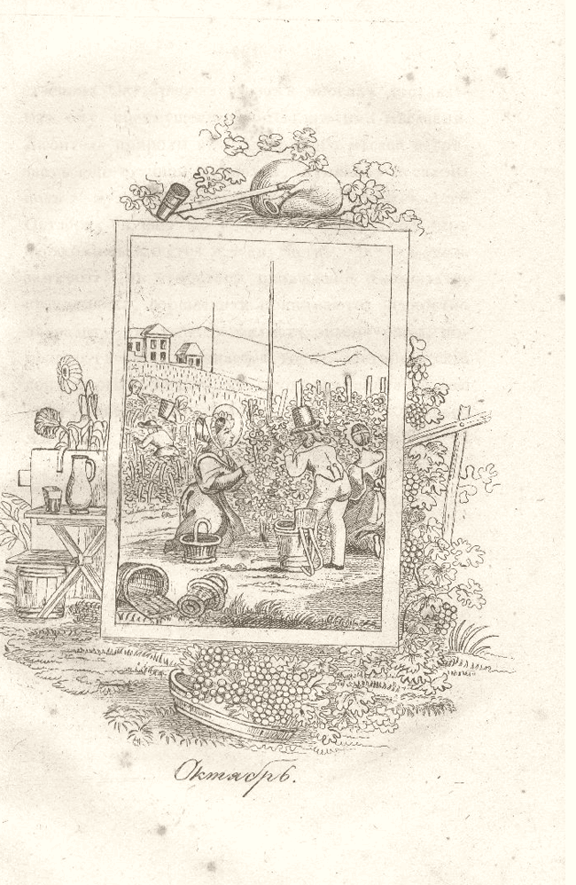Венок, сплетённый из двенадцати раcсказов, посвящаемый юным друзьям природы. С двенадцатью гравированными картинками. – Москва, в Типографии А. Семена, При Императорской медико-хирургической академии, 1842. Гравюра на меди.