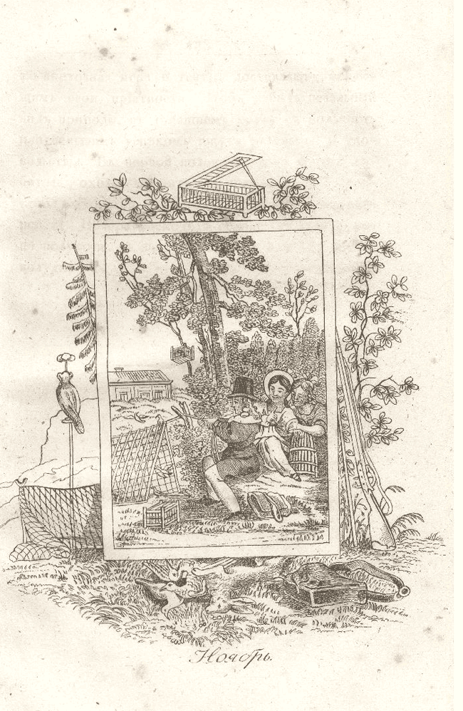 Венок, сплетённый из двенадцати раcсказов, посвящаемый юным друзьям природы. С двенадцатью гравированными картинками. – Москва, в Типографии А. Семена, При Императорской медико-хирургической академии, 1842. Гравюра на меди.