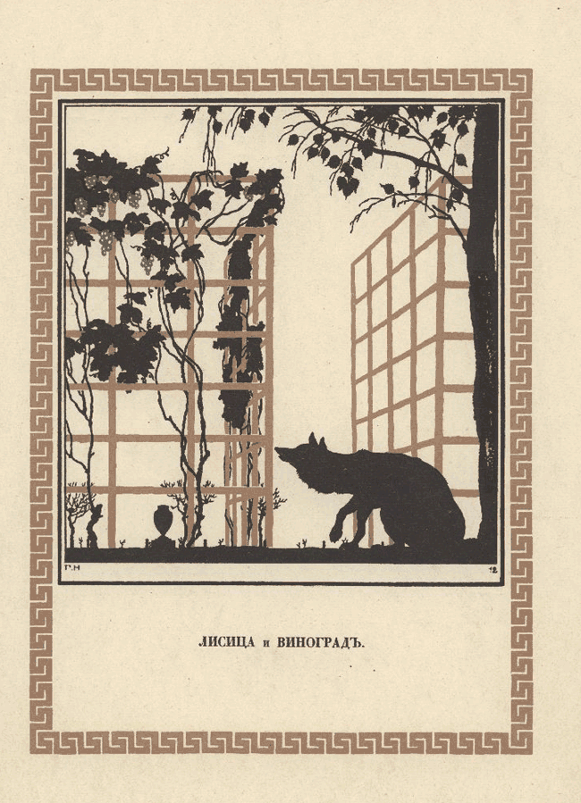Стрекоза и муравей. Лисица и Виноград. Кукушка и петух. – Санкт-Петербург – Москва, Издательство И. Н. Кнебель, Типография Р. Голике и А. Вильборг, 1912 – Художник Е. И. Нарбут.