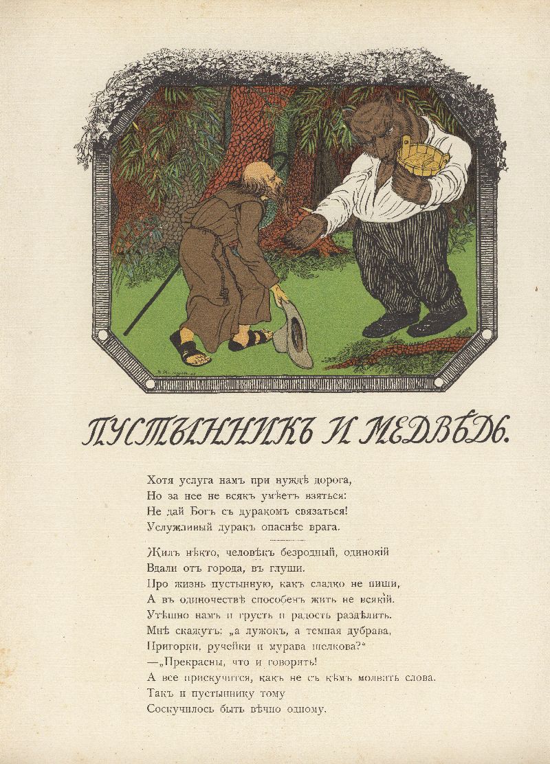 Иллюстрация к басне «Пустынник и медведь» в книге