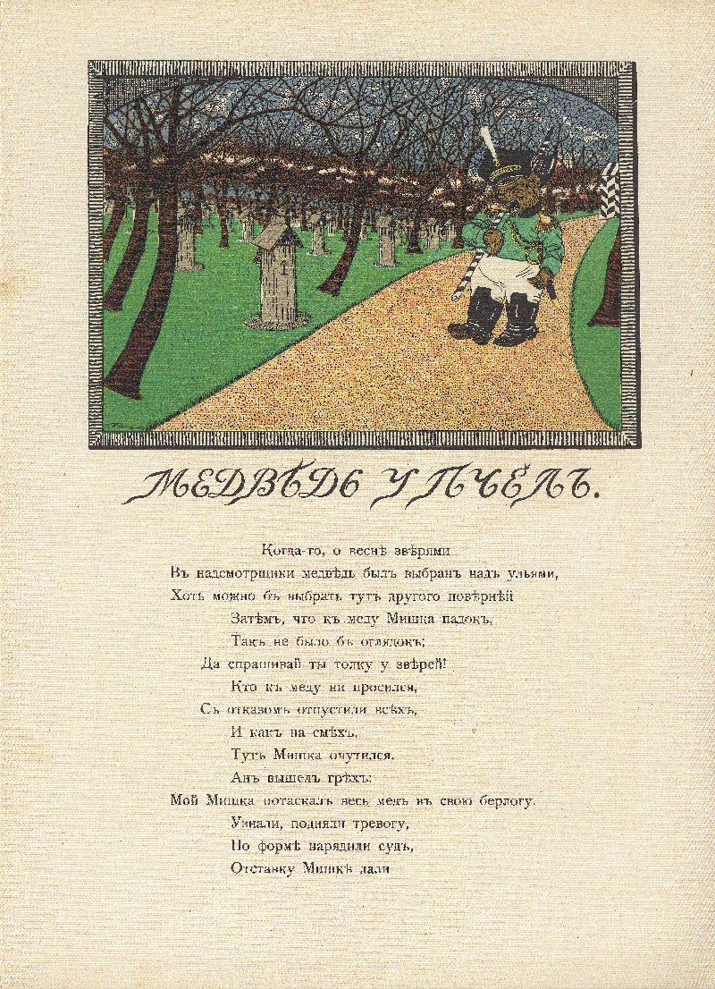 Слон и моська, Медведь у пчёл, Слон на воеводстве. Книга четвёртая. – Москва, Издательство И. Н. Кнебель, 1913. – Художник В. Тиморев.