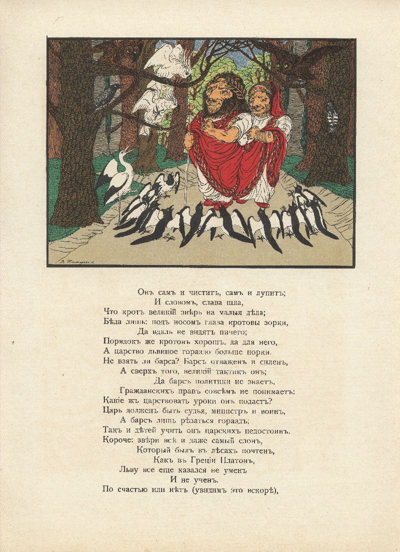 Иллюстрация к басне «Воспитание льва» в книге