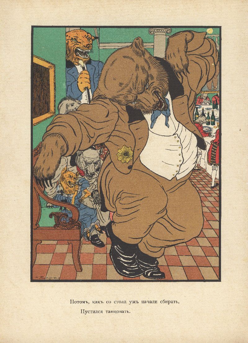 Воспитание льва, Обед у медведя. Книга третья. – Москва, Издательство И. Н. Кнебель, 1913. Художник В. Тиморев.