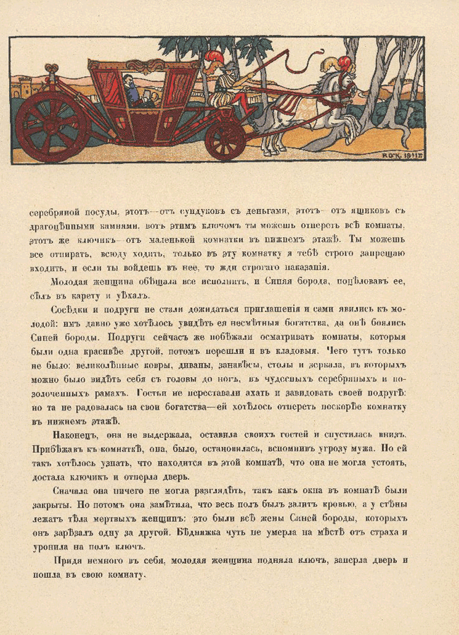 Синяя борода сел в карету и уехал. Иллюстрация к книге