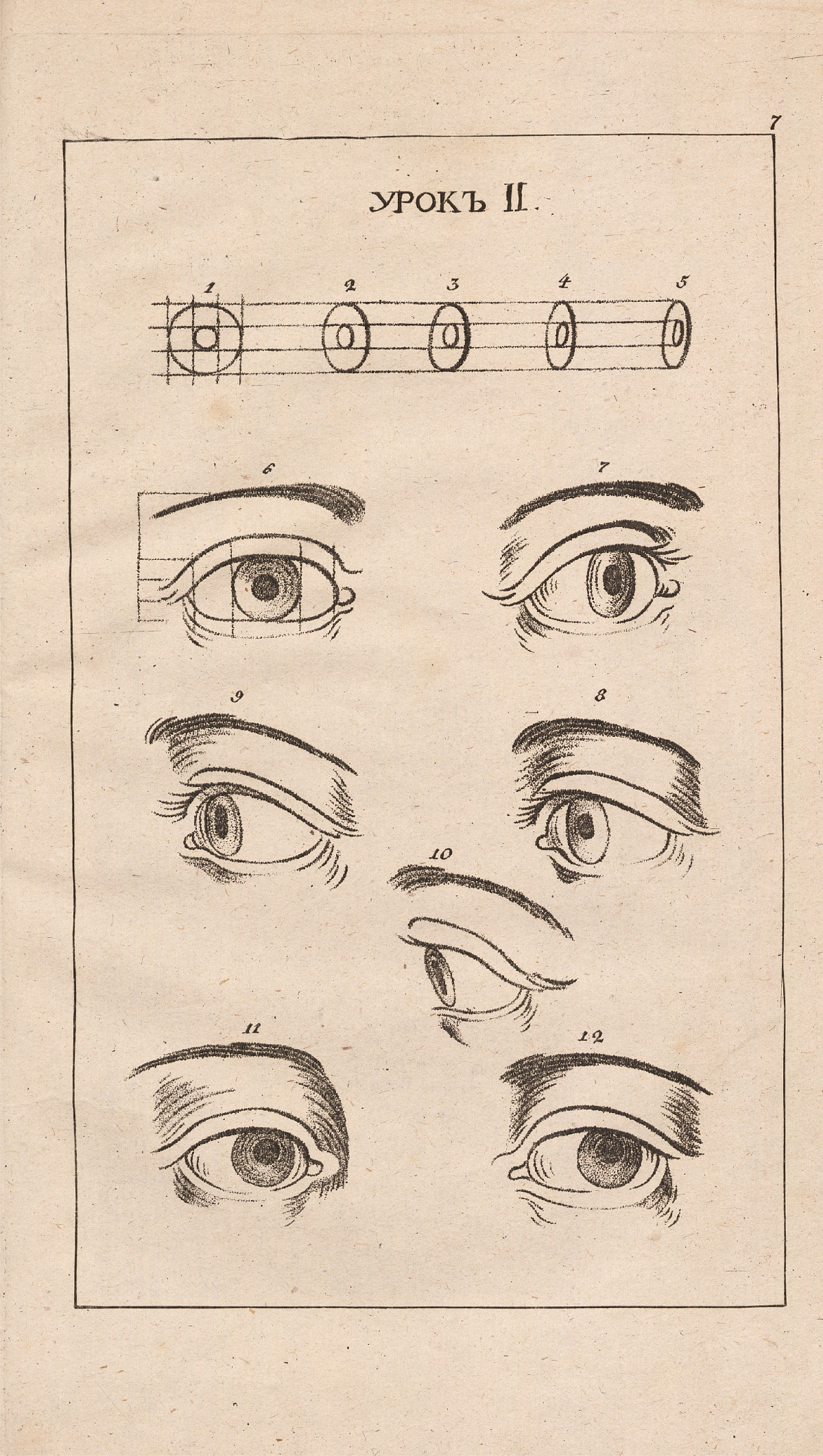 Как рисовать глаз. Иллюстрация ко второму уроку из учебника рисования XVIII века