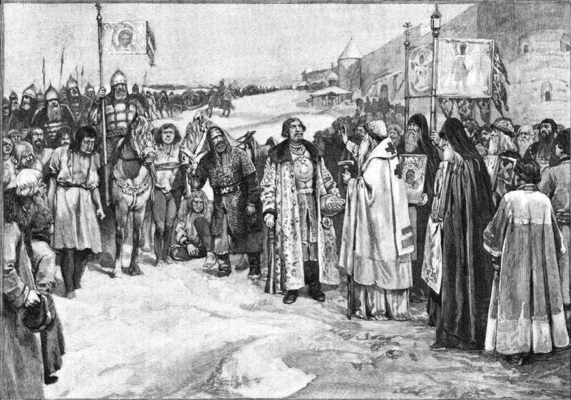 Александр Невский возвращается с Ледового побоища с полоном и добычею в Псков (1242 г.)