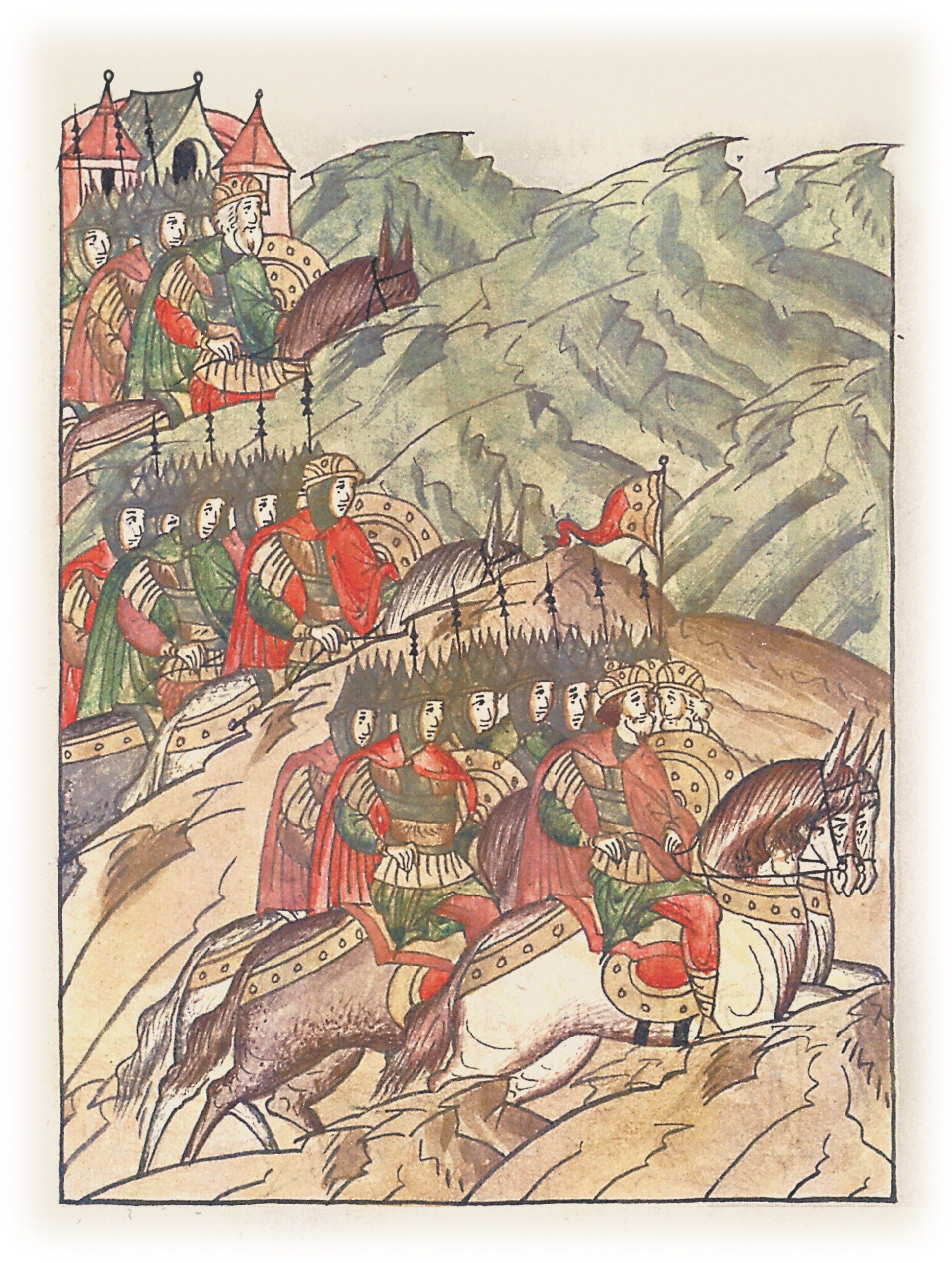 Воеводы царя Ивана Васильевича, разделившись, идут в погоню за царем Емгурчеем.