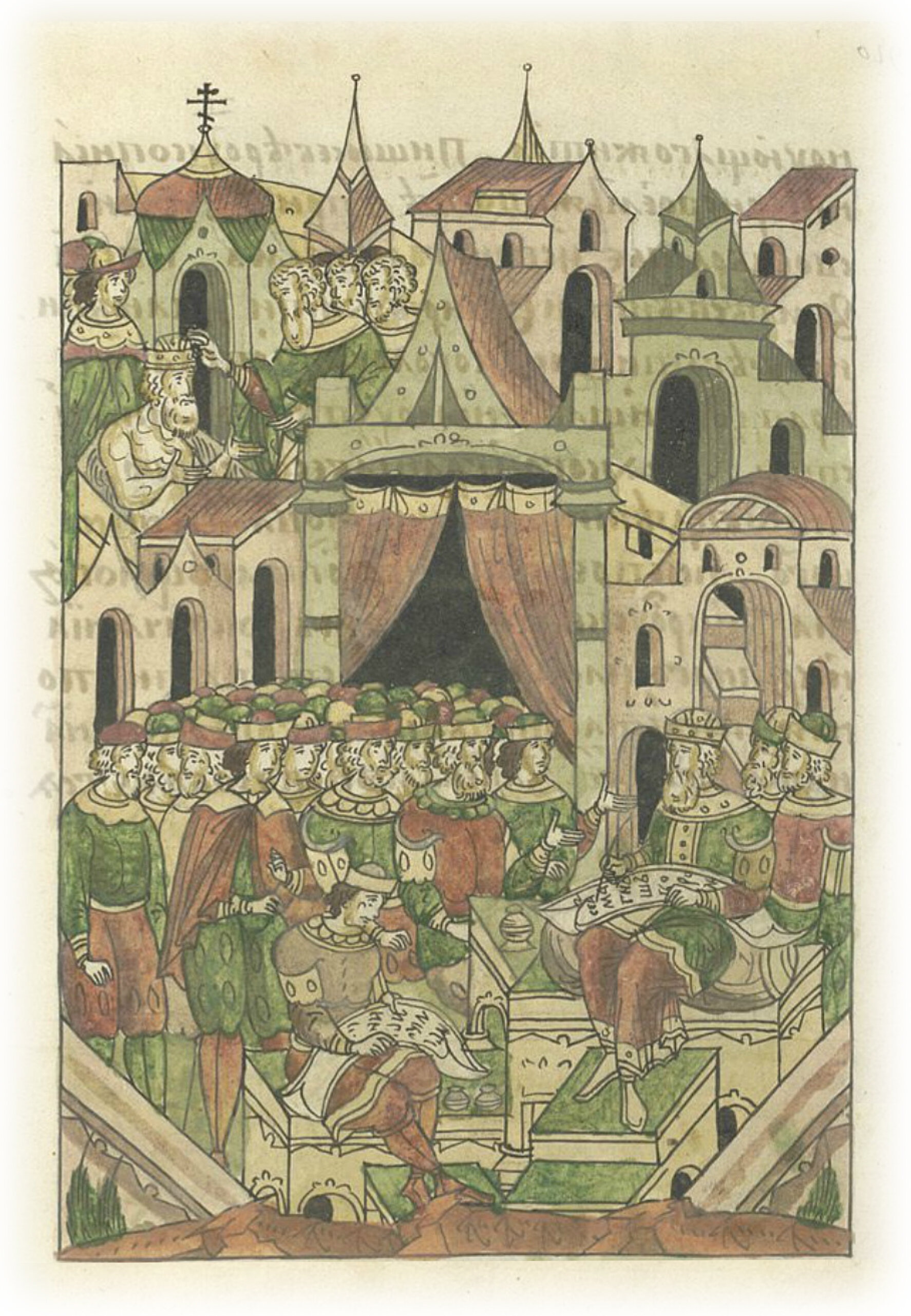 Ругодивские посадники Яким и Захар приезжают в Москву. Воеводы царя Ивана Васильевича Алексей Адашев и Иван Михайлов сообщают им, что государь пожалует их, если сдадут его воеводам помимо Ругодива Вышгород.