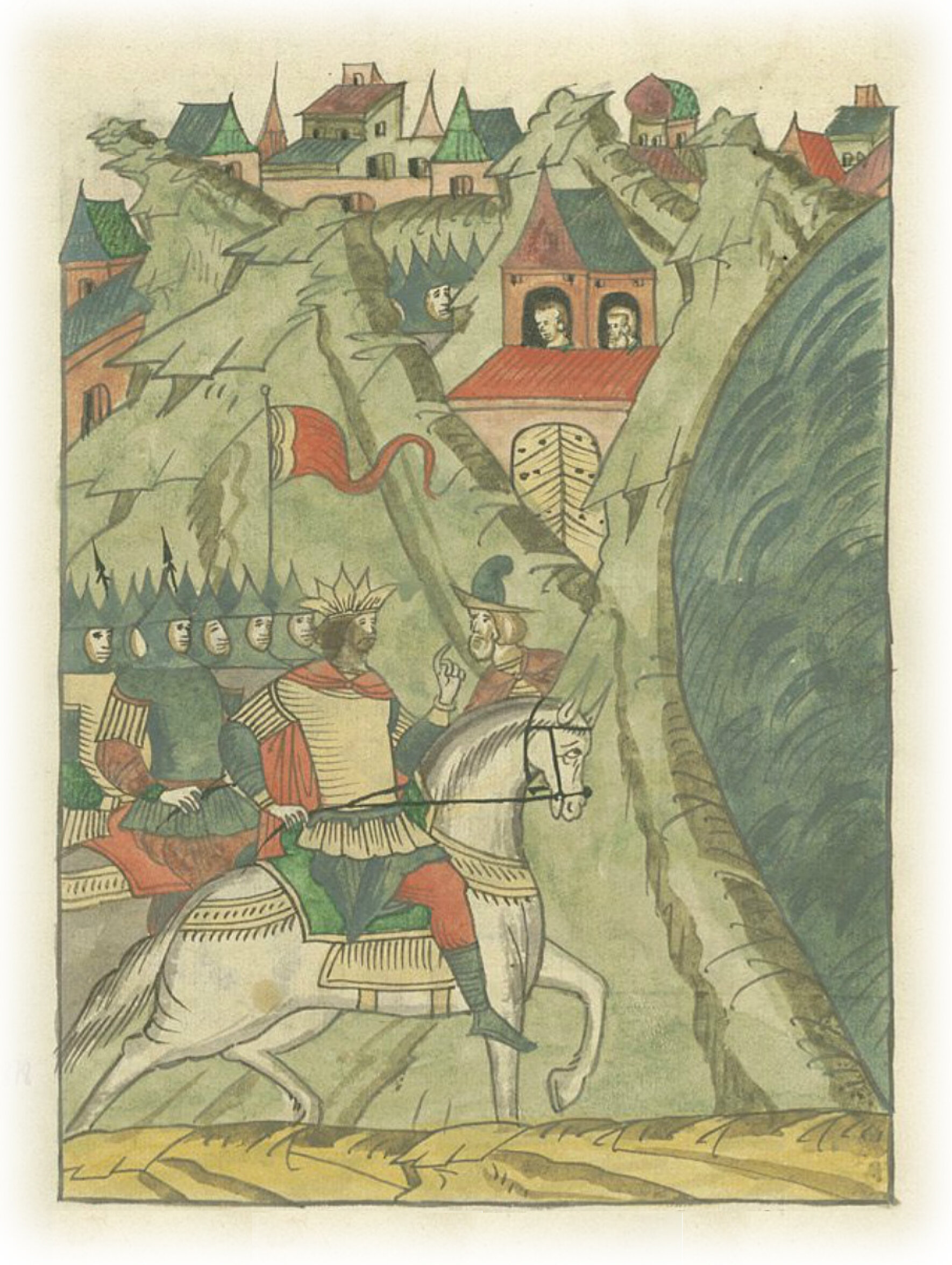 Языки говорят воеводам царя Ивана Васильевича, что магистр окопался большим рвом вокруг города Рындола, бьет из пушек и пищалей и приступает к Рындолу.