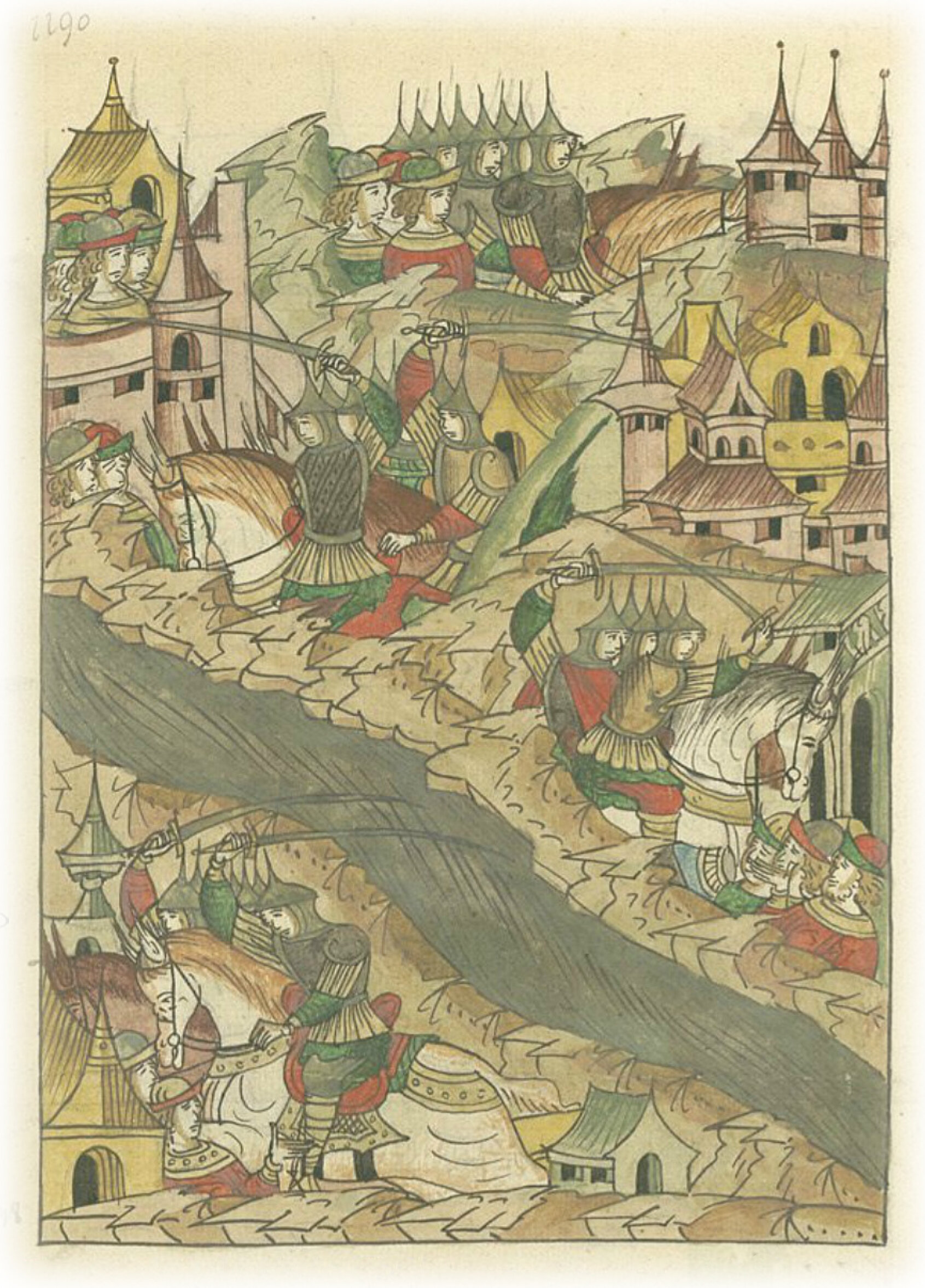 Языки говорят воеводам царя Ивана Васильевича, что магистр окопался большим рвом вокруг города Рындола, бьет из пушек и пищалей и приступает к Рындолу.